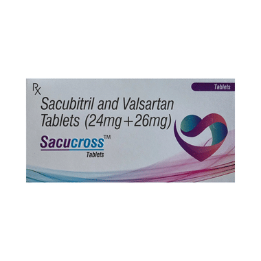 Sacucross Tablet is a combination of two medicines used to treat heart failure. It works by improving heart function, lowering blood pressure, and reducing the risk of hospitalization and death in patients with long-lasting (chronic) heart failure. It is usually taken along with other heart failure medicines.