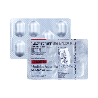 SACUtan 200 Tablet is a combination of two medicines used to treat heart failure. It works by improving heart function, lowering blood pressure, and reducing the risk of hospitalization and death in patients with long-lasting (chronic) heart failure. It is usually taken along with other heart failure medicines.