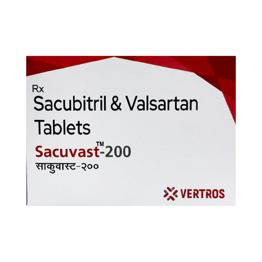 Sacuvast 200 Tablet is a combination of two medicines used to treat heart failure. It works by improving heart function, lowering blood pressure, and reducing the risk of hospitalization and death in patients with long-lasting (chronic) heart failure. It is usually taken along with other heart failure medicines.