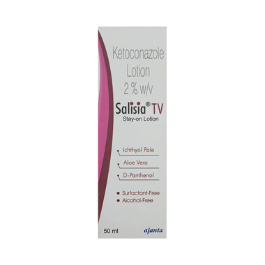 Salisia TV Stay-on Lotion is an antifungal medicine that treats various skin infections including athlete's foot, ringworm, jock itch, and yeast infections. It works by stopping fungal growth and helps relieve symptoms like itching, redness, and flaking skin.