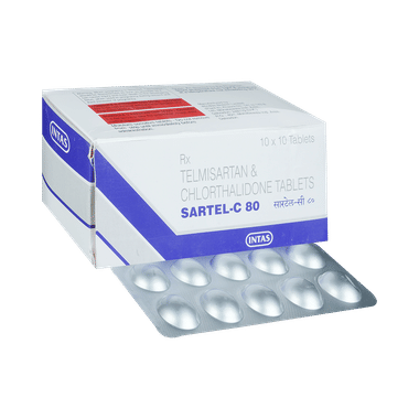 Sartel-C 80 Tablet is a combination of two medicines that helps keep the blood pressure under control. The medicine works by reducing the risk of strokes and myocardial infarction (heart attack), thereby treating hypertension (high blood pressure).
