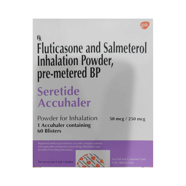 Find out detailed description, uses, directions of use, side effects, warnings and precautions, frequently asked questions about Seretide 50mcg/250mcg Accuhaler