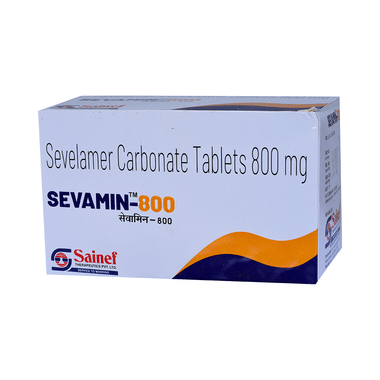 Sevamin 800 Tablet is used to treat increased phosphate levels in the blood. It is used in patients who are on dialysis due to severe kidney disease. It inhibits the absorption of phosphate from the intestine and lowers the phosphate levels in the blood.