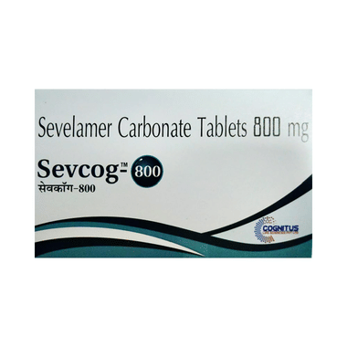 Sevcog 800 Tablet is used to treat increased phosphate levels in the blood. It is used in patients who are on dialysis due to severe kidney disease. It inhibits the absorption of phosphate from the intestine and lowers the phosphate levels in the blood.