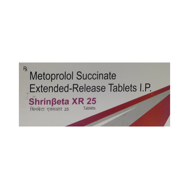 Shrinbeta XR 25 Tablet may be prescribed alone or together with other medications. The dose and frequency will depend on what you are taking it for and the severity of your condition. It may be taken on an empty stomach or with a meal, but take it regularly at the same time each day to get the maximum benefit. It may take several weeks before you get the full benefit of this medicine, and you may need to take it for the rest of your life. However, it is important to continue taking it even if you feel well. Most people with high blood pressure do not have symptoms. If you stop taking it, your condition may worsen.