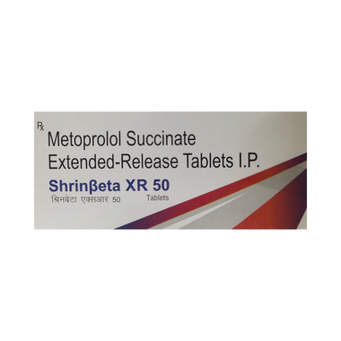 Shrinbeta XR 50 Tablet may be prescribed alone or together with other medications. The dose and frequency will depend on what you are taking it for and the severity of your condition. It may be taken on an empty stomach or with a meal, but take it regularly at the same time each day to get the maximum benefit. It may take several weeks before you get the full benefit of this medicine, and you may need to take it for the rest of your life. However, it is important to continue taking it even if you feel well. Most people with high blood pressure do not have symptoms. If you stop taking it, your condition may worsen.