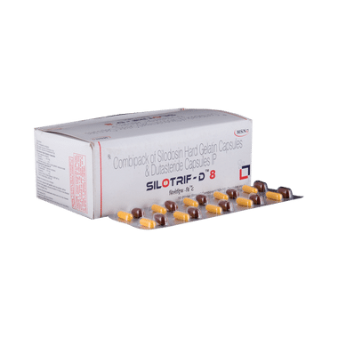Silotrif-D 8 Capsule Combipack is a combination of two medicines that work in different ways to treat men with an enlarged prostate gland. It helps to relieve symptoms such as difficulty urinating or needing to go to the toilet more often. It is not used to prevent prostate cancer.