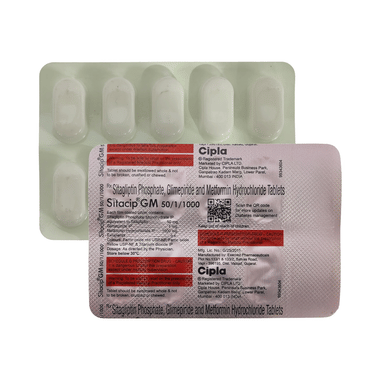 Find out detailed description, uses, directions of use, side effects, warnings and precautions, frequently asked questions about Sitacip GM 50mg/1mg/1000mg Tablet