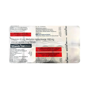 Find out detailed description, uses, directions of use, side effects, warnings and precautions, frequently asked questions about Sitamax GM 2 Forte Tablet