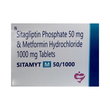 Sitamyt M 50/1000 Tablet is a combination of two medicines that control high blood sugar levels in people with type 2 diabetes mellitus. This helps prevent serious complications of diabetes, such as kidney damage and blindness and may reduce your chances of having a heart attack or stroke.