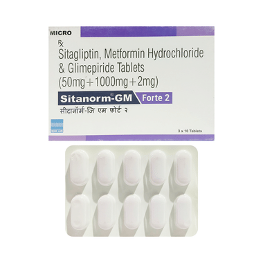 Find out detailed description, uses, directions of use, side effects, warnings and precautions, frequently asked questions about Sitanorm GM Forte 50mg/2mg/1000mg Tablet