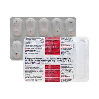 Composition: Sitagliptin (50mg) + Glimepiride (1mg) + Metformin (1000mg)