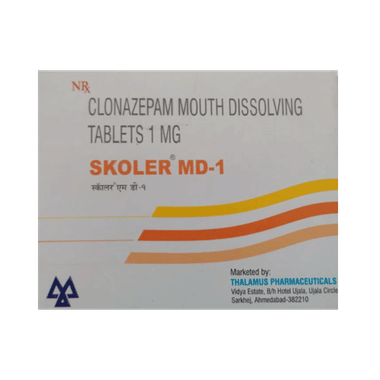 Skoler MD 1 Tablet is a prescription medicine used to treat epilepsy (seizures) and anxiety disorder. It helps to decrease the abnormal and excessive activity of the nerve cells and calms the brain.
