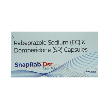 Snaprab DSR Capsule is a combination medicine used to treat gastroesophageal reflux disease (acid reflux). It works by relieving the symptoms of acidity, such as heartburn, stomach pain, or irritation. It also neutralizes the acid and promotes easy passage of gas to reduce stomach discomfort.