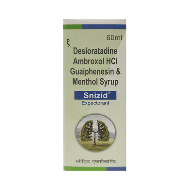 Snizid Expectorant is a combination medicine used in the treatment of cough with mucus. It thins mucus in the nose, windpipe and lungs making it easier to cough out. It also relieves allergic symptoms like runny nose, watery eyes and sneezing and also relieves minor throat irritation.Snizid Expectorant is taken with or without food in a dose and duration as advised by the doctor. The dose you are given will depend on your condition and how you respond to the medicine. You should keep taking this medicine for as long as your doctor recommends. If you stop treatment too early your symptoms may come back and your condition may worsen. Let your doctor know about all other medications you are taking as some may affect, or be affected by this medicine.