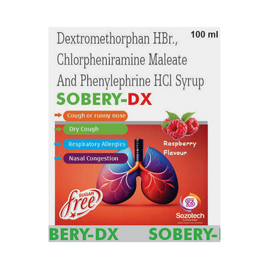 Sobery-DX Syrup Raspberry Sugar Free is taken with or without food in a dose and duration as advised by the doctor. The dose you are given will depend on your condition and how you respond to the medicine. You should keep taking this medicine for as long as your doctor recommends. If you stop treatment too early your symptoms may come back and your condition may worsen. Let your healthcare team know about all other medications you are taking as some may affect, or be affected by this medicine.