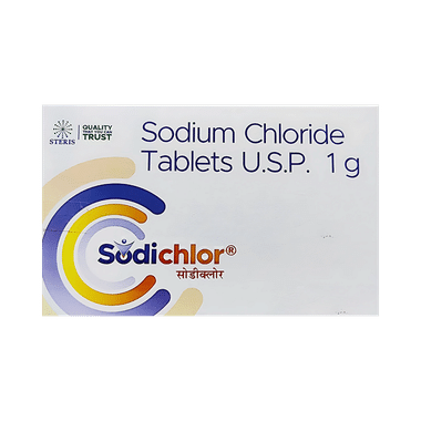 Sodichlor Tablet is a medicine used for short-term fluid replacement. It helps treat the loss of salt and electrolyte levels in the body caused by dehydration or trauma.