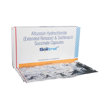Take this medicine in the dose and duration as advised by your doctor. Swallow it as a whole. Do not chew, crush or break it. Solitral Capsule ER may be taken with or without food.Solitral Capsule ER is a combination of two medicines: Alfuzosin and Solifenacin, which relieve the symptoms of benign prostatic hyperplasia. Alfuzosin is an alpha-blocker while Solifenacin is an antimuscarinic. They work by relaxing the muscles around the bladder exit and prostate gland so that urine is passed more easily. This prevents frequent, urgent, or uncontrolled urination.