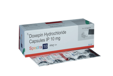 Spectra 10 Capsule is a tricyclic antidepressant. It is used in the treatment of insomnia (difficulty in sleeping). It is also used in patients intolerant of or unresponsive to alternative (other) treatment options for depression and anxiety disorders.