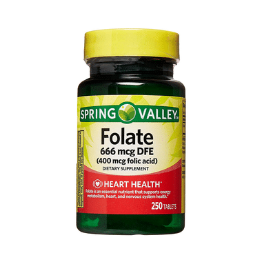 Spring Valley Folate 666mcg DFE (400mcg Folic Acid) Tablet may be taken with or without food. Take it regularly and at the same time each day to get maximum benefits. Take it as a whole, do not break, chew, or crush them. Your doctor will decide the doses you need depending on the severity of your condition. It may help to eat a well-balanced diet that has enough folic acid, iron, vitamins, and minerals.