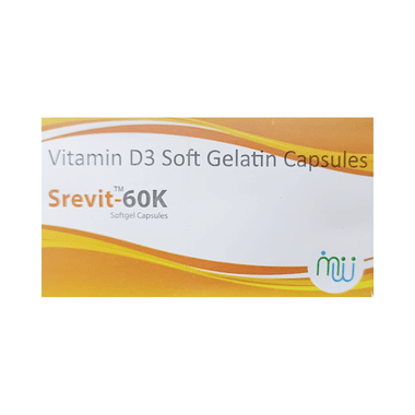 Take this medicine in the dose and duration as advised by your doctor. Swallow it as a whole. Do not chew, crush or break it. Srevit 60K Softgel Capsule may be taken with or without food.Side Effects: