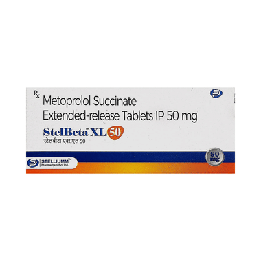 Metoprolol succinate is an extended-release form of metoprolol. This means it is released into your body slowly and only needs to be taken once a day. StelBeta XL 50 Tablet, on the other hand, is available as an immediate-release tablet. It doesn’t stay in your body as long as metoprolol succinate does. Hence, multiple doses in a day may be required.