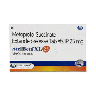 Metoprolol succinate is an extended-release form of metoprolol. This means it is released into your body slowly and only needs to be taken once a day. StelBeta XR 25 Tablet, on the other hand, is available as an immediate-release tablet. It doesn’t stay in your body as long as metoprolol succinate does. Hence, multiple doses in a day may be required.