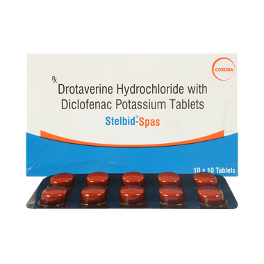 Stelbid Spas 80mg/50mg Tablet is used in the treatment of abdominal pain. It works effectively to reduce abdominal pain, discomfort, and cramps by relaxing the muscles of the stomach and gut. It also blocks certain chemical messengers that cause pain, inflammation, and fever.