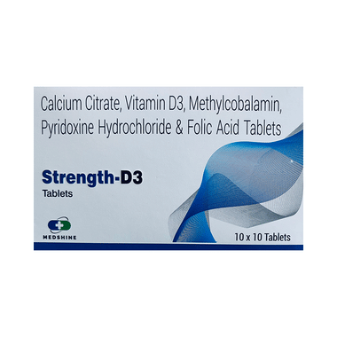 Strength-D3 Tablet is a combination of vitamin and mineral supplements prescribed to treat certain nutritional deficiencies in the body. It ensures the proper growth and functioning of the body and strengthens immunity.