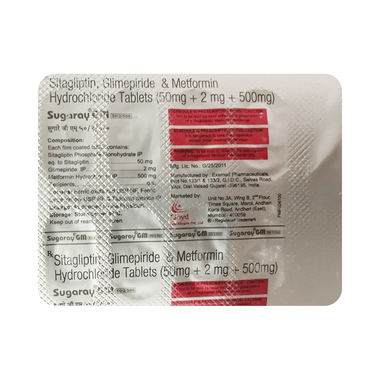 Find out detailed description, uses, directions of use, side effects, warnings and precautions, frequently asked questions about Sugaray GM 50/2/500 Tablet
