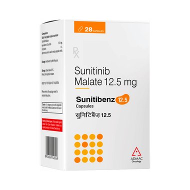 Sunitibenz 12.5 Capsule is a medicine used in the treatment of kidney cancer and gastrointestinal stromal tumor. It works by blocking specific enzymes that promote the growth of cancer cells. This way it shrinks the tumor and slows down its progression.