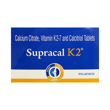 Supracal K2 Tablet | Progressd Bone & Joint Health Supplement is a supplement that provides extra calcium to the body. It is used in the treatment of calcium deficiency. It increases the levels of vitamin D in your blood which in turn raises calcium levels in the blood by helping in the absorption of more calcium.