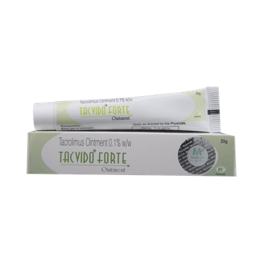 Tacvido Forte Ointment is a medicine that modulates the immune system. It works on the immune system and mostly decreases its activity. It is used to treat moderate to severe eczema (atopic dermatitis) in adults who do not respond to steroids or develop side effects on using them. In atopic dermatitis, the skin’s immune system undergoes an overreaction and causes skin inflammation leading to itchiness, redness and dryness. Tacvido Forte Ointment acts on the abnormal immune response and alters it, thereby relieving the skin inflammation and itchiness.