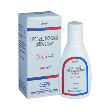 As compared to other immune-suppressing medicines, Takfa Forte Lotion has been found to be a safe and effective short-term treatment for atopic dermatitis. When applied on the affected part of the skin, its absorption to the blood and body is minimal. Hence, the side effects are less as compared to when taken through oral route.