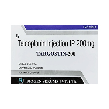 Targostin 200 Injection works by stopping the growth of bacteria and is useful for treating adults as well as children. It is a narrow-spectrum antibiotic that only covers the gram-positive type of bacteria. This medicine is given by drip or by direct injection into a vein, under the supervision of a healthcare professional. It may also be combined with other antibiotics to treat additional types of bacteria.