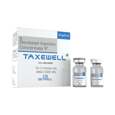Taxewell 20mg Injection is an anti-cancer medication used for the treatment of breast cancer, non-small cell lung cancer, prostate cancer and cancers of head and neck.