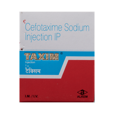 Taxim 1gm Injection fights and stops the growth of many types of bacteria. This helps to improve your symptoms and cure the underlying infection. It is given as a drip (intravenous infusion) or as an injection directly into a vein or a muscle under the supervision of a healthcare professional. Your doctor will decide the correct dose for you. You should use this medicine regularly at evenly spaced intervals as per the schedule prescribed by your doctor. Do not skip any doses and finish the full course of treatment even if you feel better. Stopping the medicine too early may lead to the infection returning or worsening.