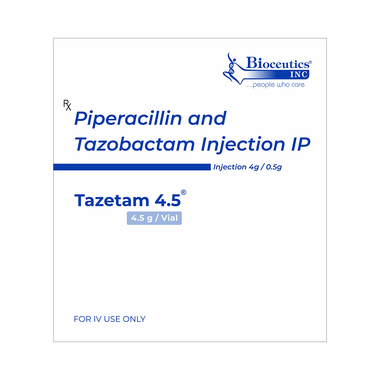 Tazetam 4.5 Injection is a combination of two antibiotics. It is used to treat various types of bacterial infections. It fights against the infection by killing the microorganisms.