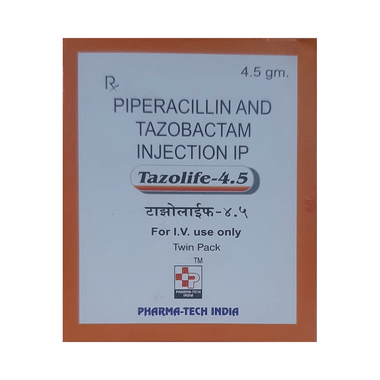 Tazolife 4000mg/500mg Injection is a combination of two medicines. It is used to treat bacterial infections like tonsillitis, sinusitis, otitis media, respiratory tract infections, urinary tract infections, boils, abscesses, cellulitis, wound infection, bone infection and oral cavity infections.