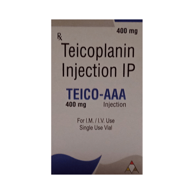 Teico-Aaa 400mg Injection works by stopping the growth of bacteria and is useful for treating adults as well as children. It is a narrow-spectrum antibiotic that only covers the gram-positive type of bacteria. This medicine is given by drip or by direct injection into a vein, under the supervision of a healthcare professional. It may also be combined with other antibiotics to treat additional types of bacteria.