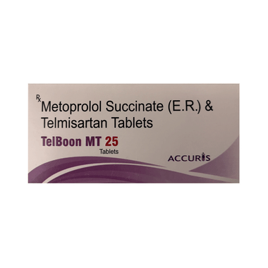 It is advised to take TelBoon MT 25 Tablet ER with food at a fixed time each day to maintain consistent levels of medicine in the blood. Retain taking it for as long as advised by your doctor. Even if you feel well, do not stop this medicine on your own because high blood pressure often has no symptoms. If you stop taking it, your condition may get worse. Retaining active with regular exercise, reducing your weight and eating a healthy diet will also help control your blood pressure. Follow your doctor’s advice while taking this medicine.