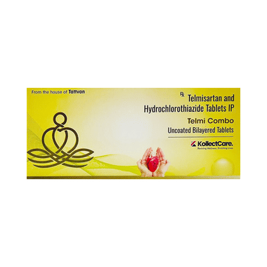 Telmi Combo Tablet contains two medicines, both of which help to control high blood pressure. It is generally used when one medicine alone is not controlling the blood pressure effectively. Lowering blood pressure helps to reduce your risk of having a heart attack or a stroke in the future.