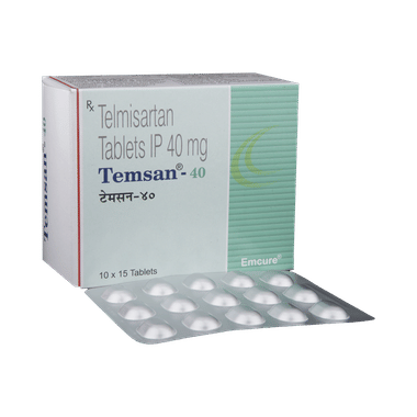 Temsan 40 Tablet is a medicine used to treat high blood pressure and heart failure. Lowering blood pressure helps prevent future heart attacks and strokes. This medicine is also effective in preserving kidney function in patients with diabetes.
