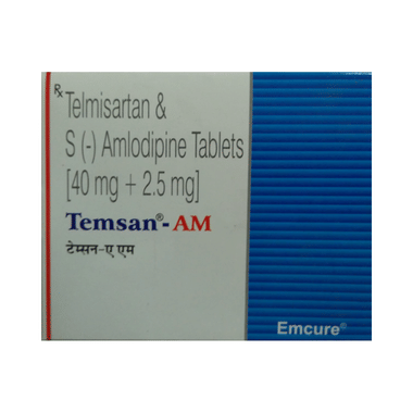 Temsan-AM Tablet contains two medicines, both of which help to control high blood pressure. It lowers the blood pressure by relaxing the blood vessels and making it easier for your heart to pump blood around your body. This will reduce your risk of having a heart attack or a stroke.