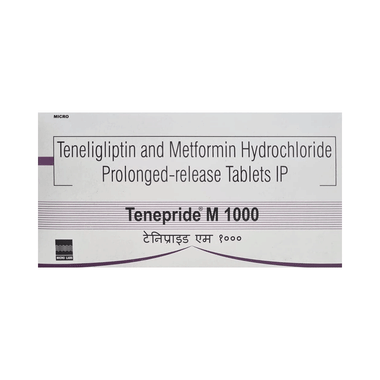 Tenepride M 1000 Tablet PR is a combination of two medicines that control high blood sugar levels in people with type 2 diabetes mellitus. This helps prevent serious complications of diabetes such as kidney damage and blindness and may also reduce your chances of having a heart attack or stroke.