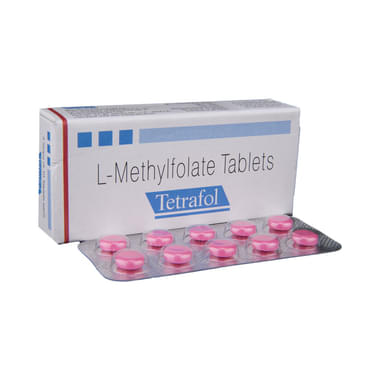 Tetrafol L-Methylfolate Tablet is a dietary supplement. It is used to treat nutritional deficiency caused by low levels of folate in the body. Folate plays an essential role in the production of red blood cells, and its deficiency can lead to anemia.Tetrafol L-Methylfolate Tablet should be taken in dose and duration as advised by the doctor. Do not stop taking this medicine without consulting your doctor. This medicine is to be swallowed as a whole and taken with or without food. It is not to be chewed or crushed.