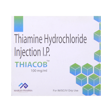 Thiacob Injection is a supplement of thiamine. Thiamine is also known as Vitamin B1. The medicine is used in the treatment of low levels of thiamine in the body. It protects the body from conditions which are caused due to low levels of thiamine such as heart, brain and nerve disorders.