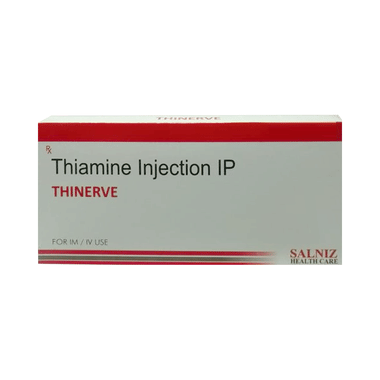 Thinerve Injection is a supplement of thiamine. Thiamine is also known as Vitamin B1. The medicine is used in the treatment of low levels of thiamine in the body. It protects the body from conditions which are caused due to low levels of thiamine such as heart, brain and nerve disorders.