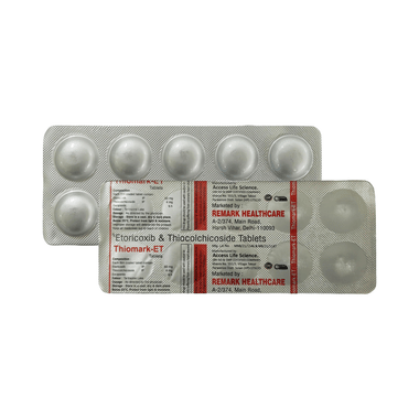 Thiomark ET 60mg/4mg Tablet is a combination of two medicines used in the treatment of pain due to muscle spasms. It improves the movement of muscles and provides relief from pain and discomfort associated with muscle spasms.