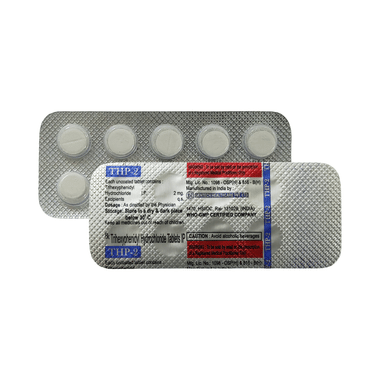 THP 2mg Tablet can be taken with food or without food. Consider taking it with food if it causes an upset stomach. Take it at the same time each day; this helps maintain a consistent level of medicine in the body. Take this medicine in the dose and duration as advised by your doctor, and if you have missed a dose, take it as soon as you remember. Do not skip any doses and finish the full course of treatment even if you feel better. This medication must not be stopped suddenly without talking to the doctor, as it may result in a worsening of symptoms.
